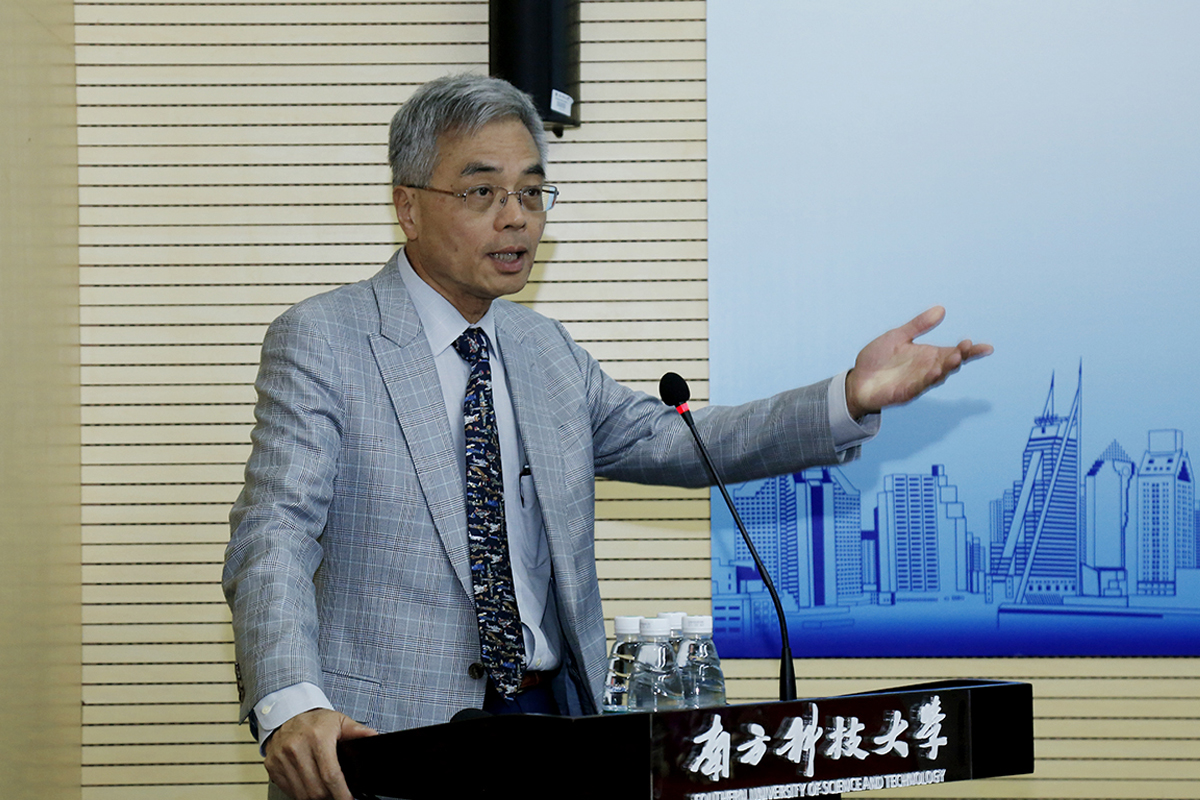 史维在仪式上致辞。他讲述了南方科技大学与香港科技大学合作建设深港微电子学院的背景,指出香港科技大学从成立以来始终致力于促进地区经济和社会发展,在学科建设特别是电子工业和计算机工业等专业领域取得了突出成绩。此次与南方科技大学合作,是学校把握粤港澳大湾区建设的有利契机,在加强两校合作与共赢,共同促进核心技术研发与人才培养,支撑粤港澳大湾区建设的有益尝试。