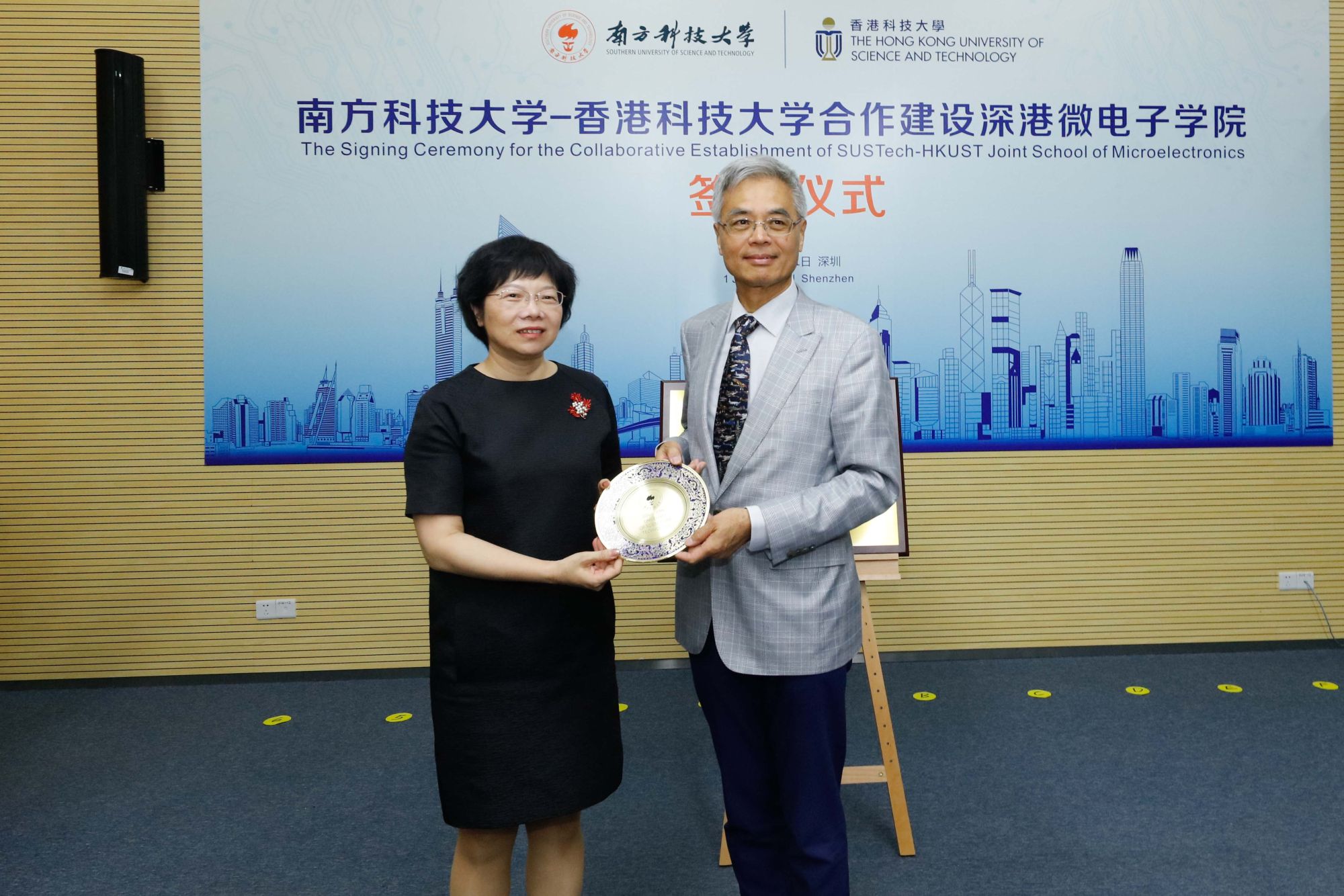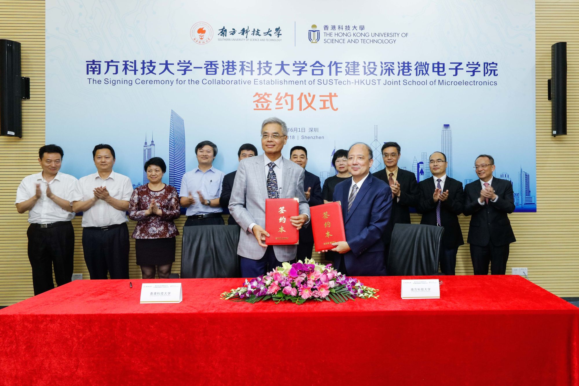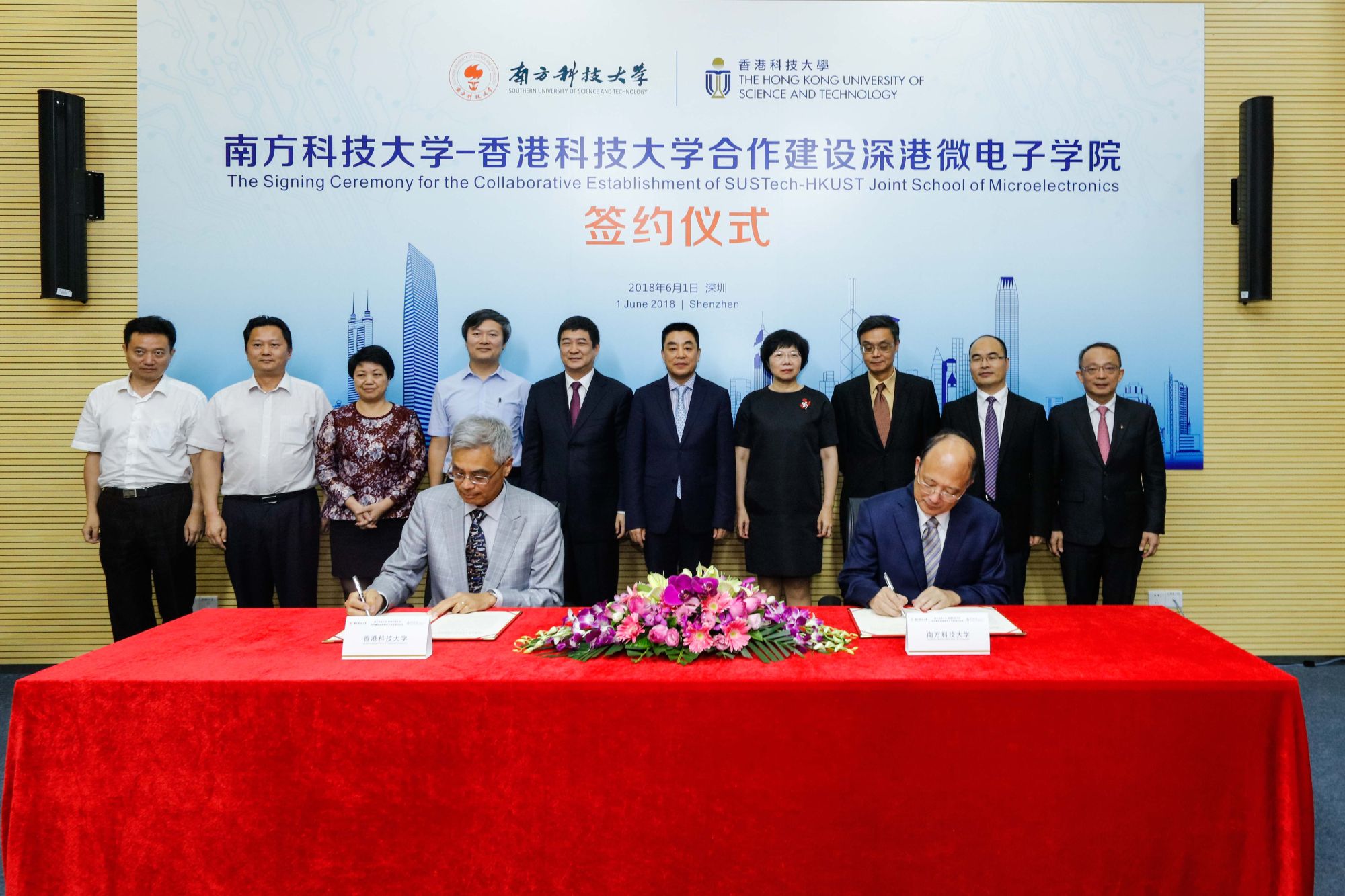 香港中联办教科部,广东省教育厅,深圳市发展和改革委员会,深圳市经济贸易和信息化委员会,深圳市科技创新委员会,深圳市财政委员会,深圳市教育局,香港科技大学和南方科技大学有关负责人,微电子行业专家和企业界代表,以及两校教师代表等出席了签约仪式。